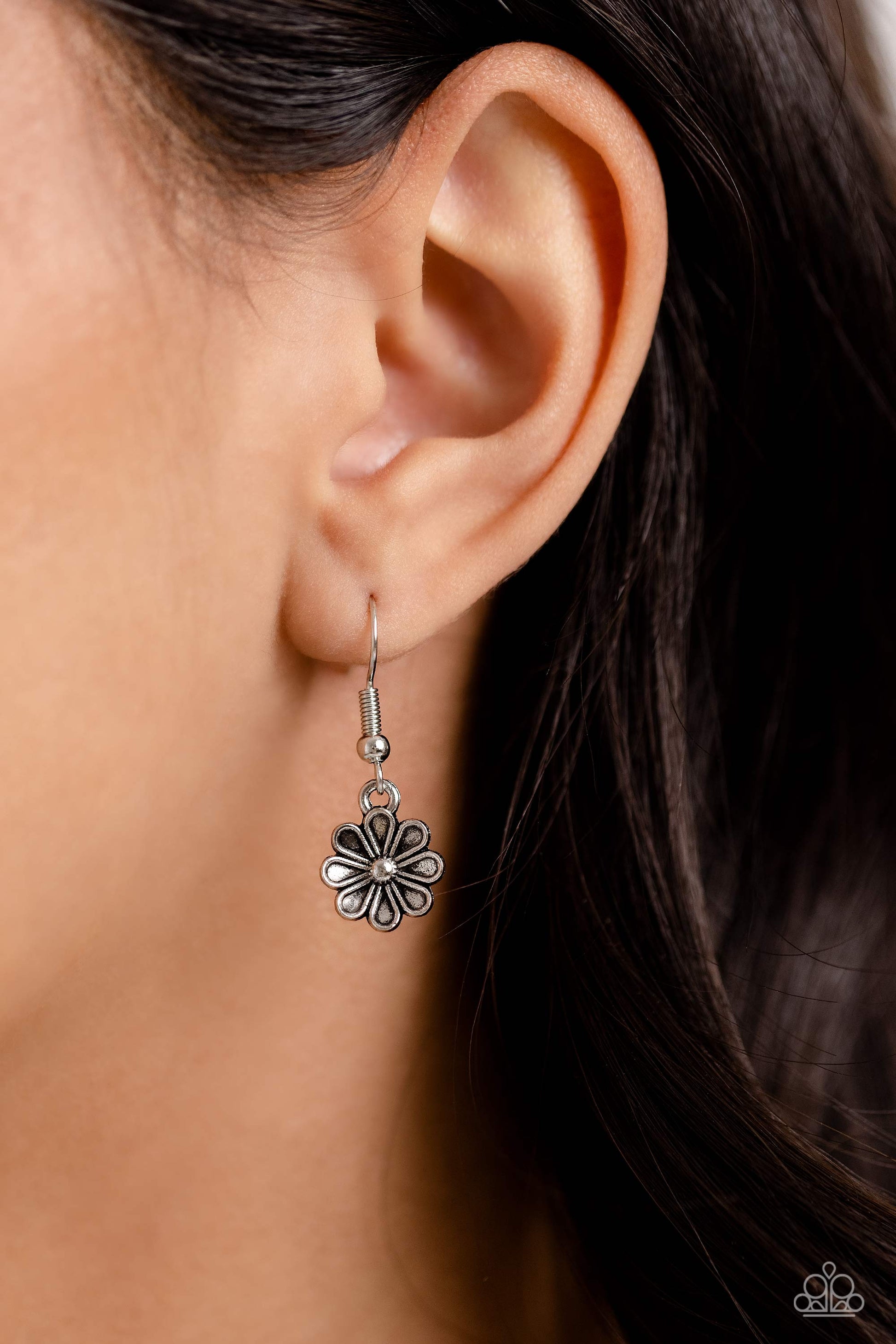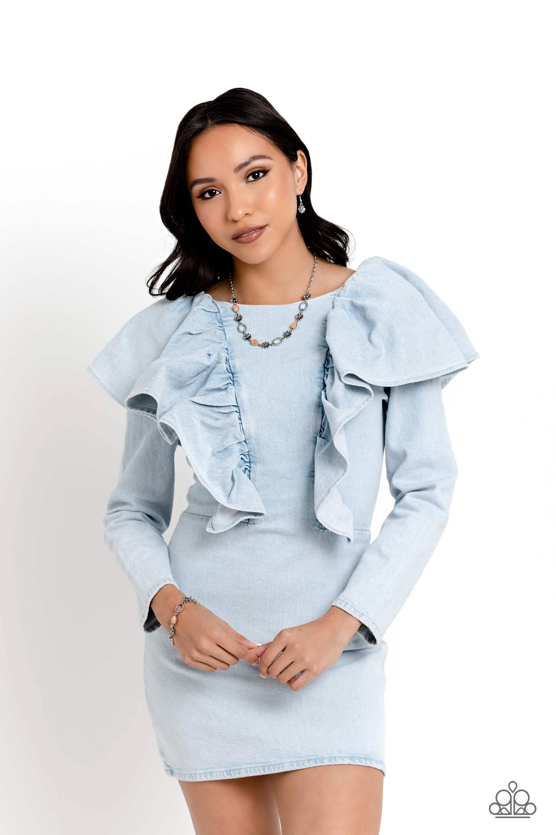 Metallic daisy charms, silver hoops studded with a dot motif, and orange teardrop stones, pressed into textured silver frames interlock together around the neck for a free-spirited flair. Features an adjustable clasp closure. As the stone elements in this piece are natural, some color variation is normal.